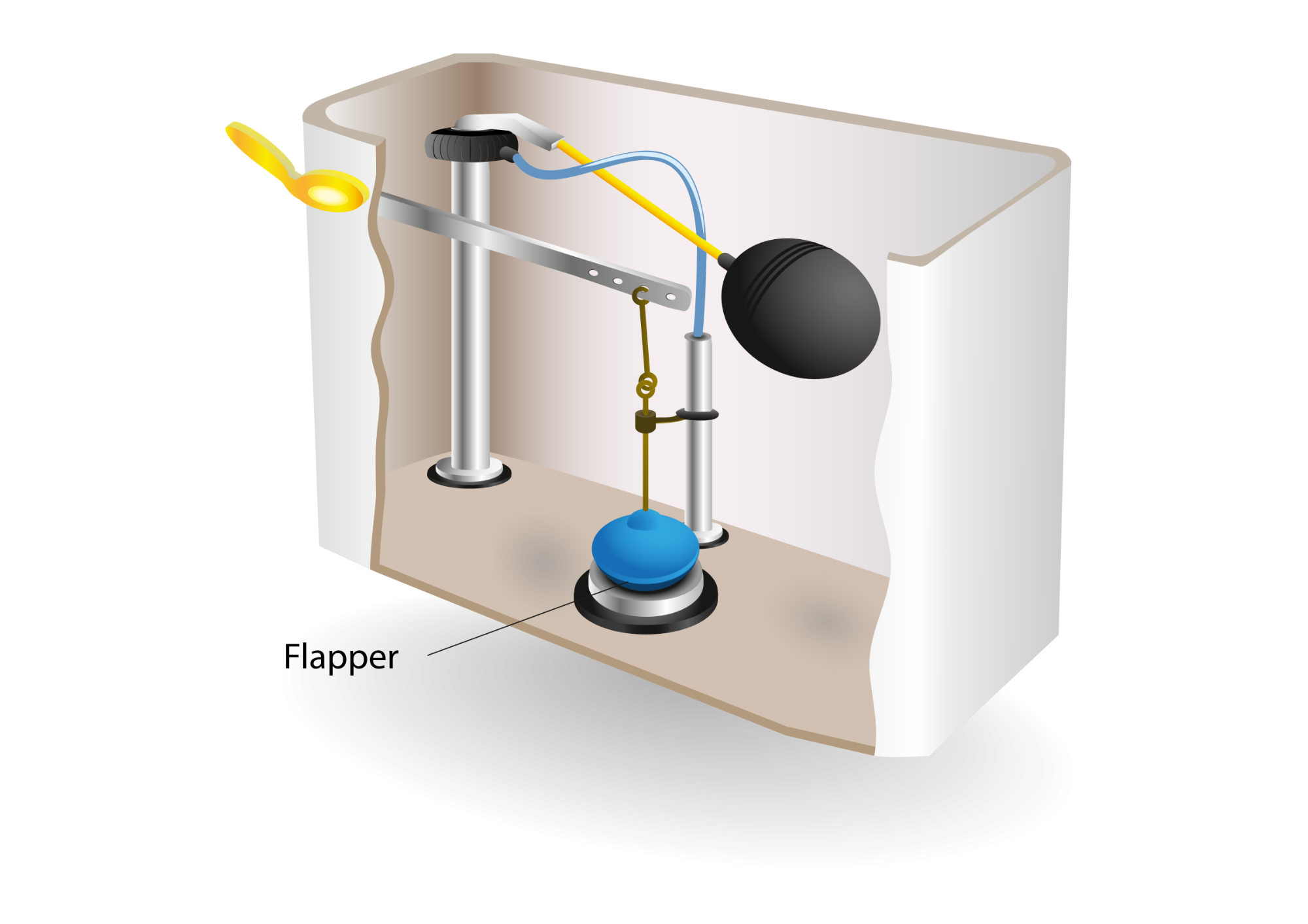 The flapper is the rubber seal that controls the amount of water flowing from the tank to the bowl during a flush. Over time (typically after five years), it can wear out and start leaking.