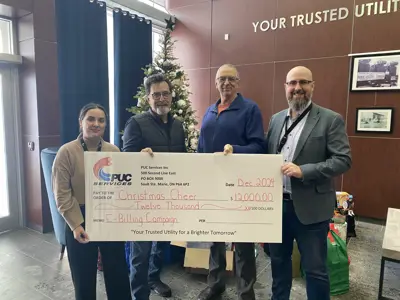 Sault Ste. Marie, ON (Tuesday, December 10, 2024) – PUC Services Inc. is proud to donate $12,000 to Christmas Cheer, thanks to the overwhelming success of our recent E-billing Campaign. Additionally, staff and customers dropped off nearly 300 toys during a week-long toy drive, helping to bring joy and holiday magic to families and children in need throughout Sault Ste. Marie.